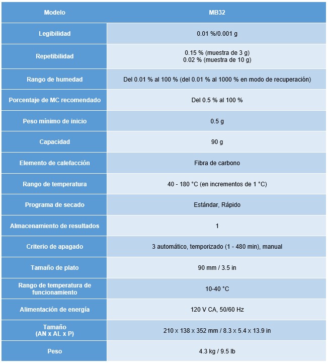 El nuevo MB32 de OHAUS cuenta con una carcasa rediseñada con un material más resistente, una innovadora tecnología de calentamiento de fibra de carbono y una celda de carga mejorada para mejorar la durabilidad y el rendimiento. El MB32, fácil de usar, es la elección perfecta para las comprobaciones periódicas de humedad.