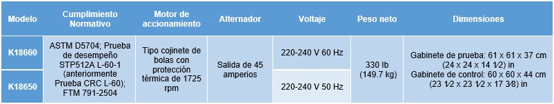 Caja de engranajes y sistema de transmisión: dos engranajes rectos y un cojinete de prueba funcionan dentro de una caja de acero inoxidable maquinada con ventana removible. El eje del engranaje de transmisión está acoplado a un motor de cojinete de bolas de alta resistencia cargado por un alternador de 45 amperios. El valor de carga del engranaje de prueba L-60-1 estándar de 128 vatios de salida del generador se mantiene con precisión mediante un banco de carga indicado digitalmente. Todos los componentes de la caja de engranajes son de fácil acceso para su limpieza.