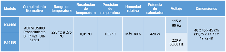 Ficha técnica – Automatic Noack Non-Woods Evaporative Apparatus