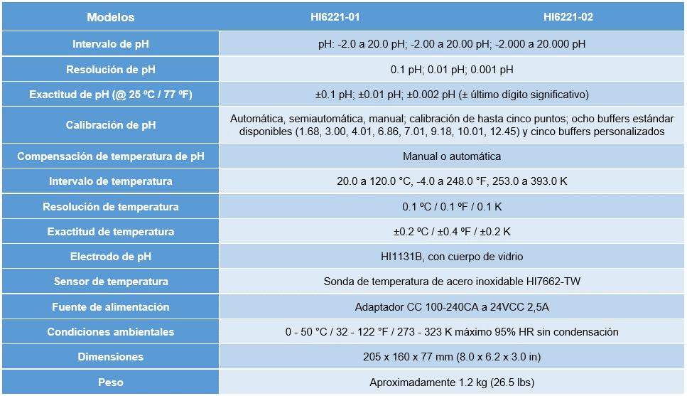 HI6221 es un medidor de mesa optimizado con una gran pantalla táctil, compuesto por una carcasa y un módulo de medición de pH/ORP integrado. Compacto y fácil de operar, el medidor de mesa se entrega con el electrodo de pH combinado de doble unión HI1131B de Hanna Instruments, junto con la sonda de temperatura HI7662-TW.