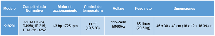 El sistema de circulación incluye una bomba de engranajes con cojinete de carbono de velocidad constante, válvulas y un caudalímetro que dirige un flujo de agua controlado a una boquilla de pulverización capilar (1 mm) dirigida a la carcasa del cojinete. El robusto motor de accionamiento de 1⁄3 hp hace girar el cojinete de prueba a 600 rpm mientras acciona la bomba de circulación. Un sistema de dos poleas permite el funcionamiento independiente de la bomba para hacer circular el agua mientras la calienta a la temperatura de prueba. Montado sobre una base de acero terminada con pies de ubicación para colocación permanente sobre la mesa.