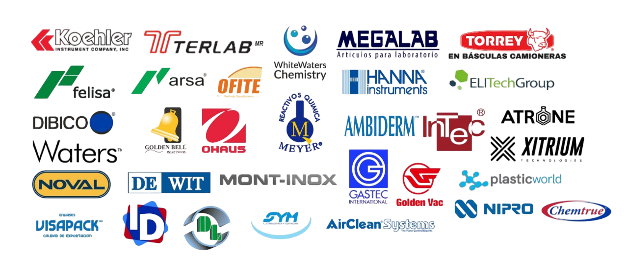 Tenemos la distribución de marcas de prestigio internacional como son: Hanna Instruments, Dibico, OFI Testing Equipment, Koehler Instruments, Hach, Ohaus, Airclean Systems, Golden Bell, Química Meyer, Felisa, entre muchas más.