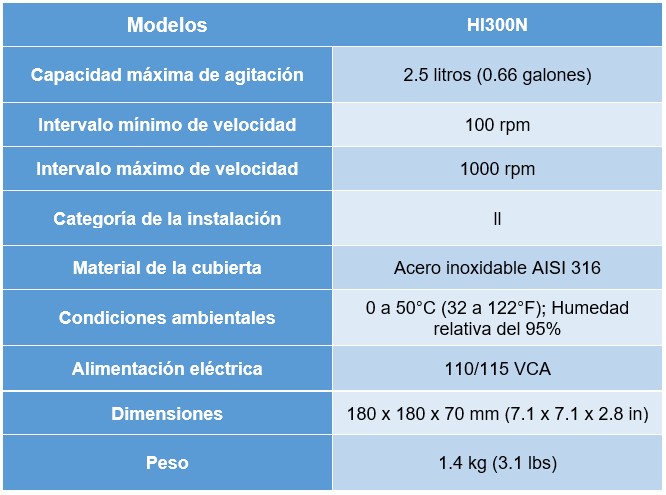 El agitador magnético HI300N es compacto y ligero, lo que permite un fácil manejo en el laboratorio. El área limitada en las mesas de laboratorio ya no es una preocupación con este agitador que ahorra espacio. La luz LED indicadora del funcionamiento asegura al usuario que el agitador está en marcha. El agitador magnético HI300N es muy conveniente para el usuario que no necesita realizar el gasto adicional de un elemento calefactor. El avanzado diseño integra controles electrónicos que permiten al usuario regular fácilmente la velocidad con gran precisión.