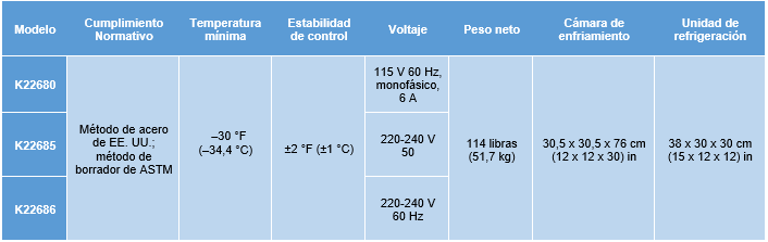 Realiza pruebas de movilidad de grasa a bajas temperaturas para predecir las características de bombeabilidad. Determina la idoneidad de las grasas para aplicaciones en sistemas centralizados o a granel donde se utilizan bombas, válvulas o tuberías para distribuir o transferir grasa. Consta de viscosímetro de presión, baño de enfriamiento y sistema de refrigeración. El viscosímetro de presión de acero inoxidable está equipado con un capilar modificado.