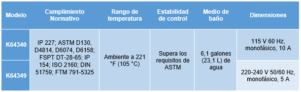 Baño María totalmente aislado, controlado termostáticamente y con dispositivo de nivel de agua constante. El aparato sumerge seis tubos de ensayo de 350 ml para pruebas de corrosión de tiras de plata. Pared interior de acero inoxidable y pared exterior de acero con recubrimiento en polvo.