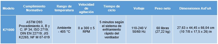• Tasa de calentamiento: de acuerdo con ASTM D93 procedimiento A, B y C