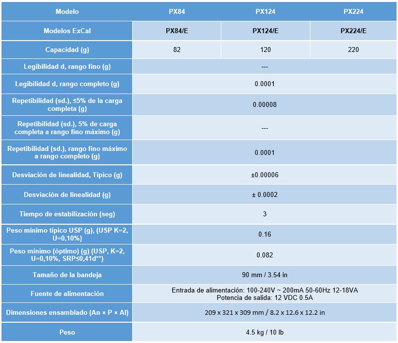 • La PX ofrece alta precisión y repetibilidad para aplicaciones de pesaje esenciales en configuraciones de laboratorio, industriales y educativos a un precio económico