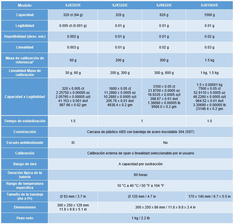 Series SJX, Series Carat & Gold son ideales para el pesaje de joyas, metales preciosos, gemas, etc. Equipadas con protección de sobrecarga superior, una gran pantalla retro-iluminada, tiempo rápido de estabilización, múltiples unidades de pesaje, modos de aplicación y opciones de conectividad, estas balanzas planas ofrecen una experiencia de pesaje verdaderamente intuitiva para el usuario.