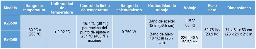 • Para temperaturas desde ambiente hasta 200 °C (–30 °C con el uso de refrigerante refrigerado circulante)