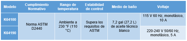 Baño de aceite a temperatura constante para probar la estabilidad a la oxidación de aceites minerales aislantes. Sumerge seis recipientes de aceite a la profundidad requerida según las especificaciones ASTM a 110 °C ± 0,5 °C y controla el flujo de oxígeno a cada muestra a una velocidad de 1 L/h ± 0,1 L/h a través de seis medidores de flujo independientes montados en un colector común. El baño aislado de acero inoxidable de doble pared tiene control de temperatura por microprocesador con punto de ajuste digital conmutable °C/°F y pantalla. El operador y el equipo están protegidos por un circuito de control de sobretemperatura que interrumpe automáticamente la energía a la unidad cuando la temperatura del baño excede un punto de corte programado. Solicite la torre de secado del termómetro de baño y el catalizador por separado.