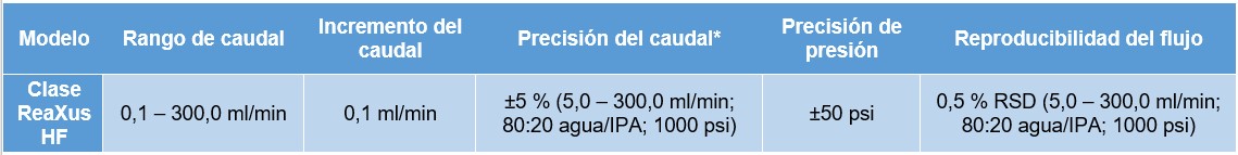 *El caudal depende de la selección del disolvente y de la presión de funcionamiento.