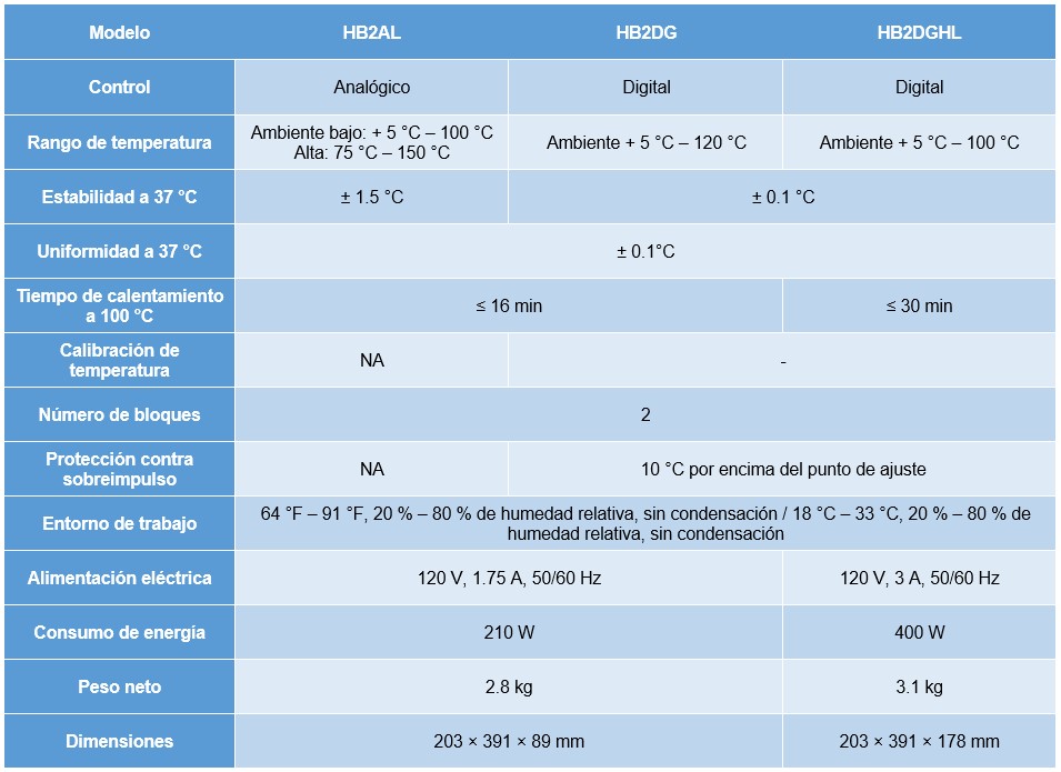 Ficha técnica – Calentadores de Bloque Seco de 2 bloques
