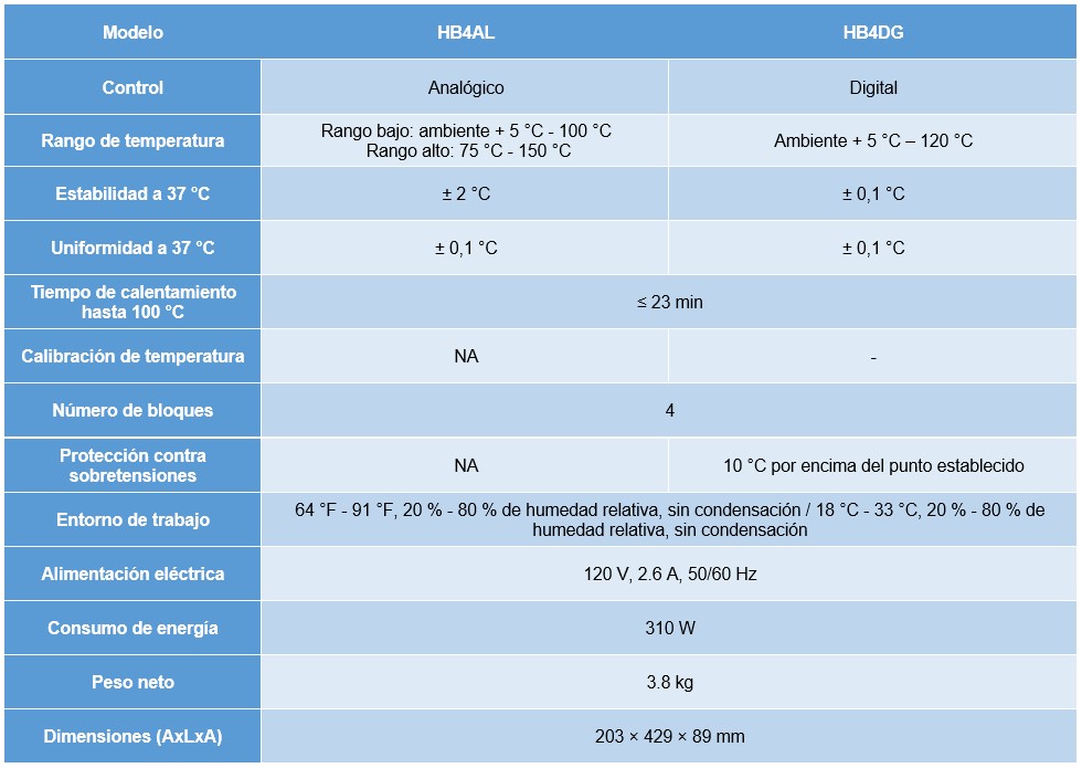 Ficha técnica – Calentadores de Bloque Seco de 4 bloques