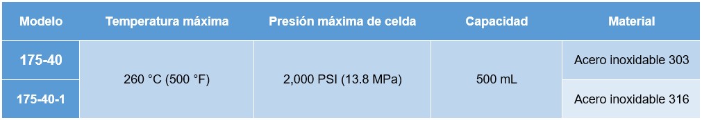 • 175-40-1: Acero inoxidable 316