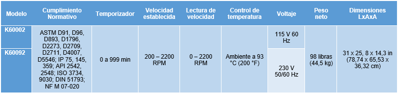 Centrífuga de sobremesa completamente automática diseñada expresamente para aplicaciones de pruebas de petróleo. Cuenta con un panel de control con pantalla táctil LCD de 4-1/2”. Esta pantalla táctil integrada se puede utilizar para encender y apagar la calefacción, establecer la duración de la prueba, establecer los valores de RCF/RPM y elegir el tipo de conjunto de rotor y la cristalería correspondiente que se utilizará durante la prueba. El mecanismo de velocidad del motor Servoed permite al usuario simplemente establecer la velocidad deseada y el instrumento alcanzará esa velocidad. Este mecanismo calcula las RPM según el RCF dado y el tipo de rotor seleccionado. La tapa grande, transparente y de apertura superior proporciona un fácil acceso al rotor y los soportes de los tubos y para la limpieza de la unidad. La tapa tiene un diámetro de 18-1/2” ventana de visualización que permite al operador ver el interior de la cámara para comprobar el estado del rotor y comprobar si hay un posible derrame de los tubos de centrífuga. Los cojines de PTFE moldeados brindan máxima protección y un fácil posicionamiento de los tubos. La centrífuga viene equipada con un mecanismo de bloqueo de seguridad. Tras el apagado de emergencia, la puerta se bloquea y no se puede desbloquear hasta que la unidad se detenga por completo, se vuelva a encender y se presione la tecla de parada/desbloqueo en la pantalla táctil. Además, la centrífuga no puede arrancar mientras la puerta de la cámara esté abierta y el pestillo no esté enganchado. La función “Purga de nitrógeno” permite una lenta liberación de nitrógeno en el recipiente de la centrífuga. Esta característica requiere una fuente de gas nitrógeno externa y se puede conectar fácilmente a un puerto de entrada ubicado en la parte posterior de la unidad.