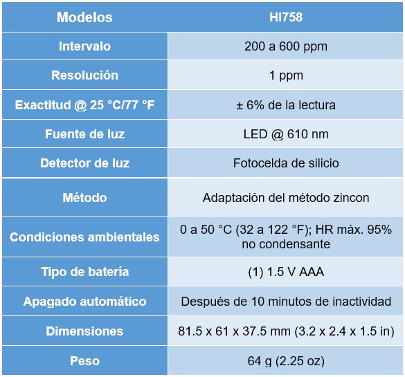 Ficha técnica – Colorímetro checker® HC para calcio marino