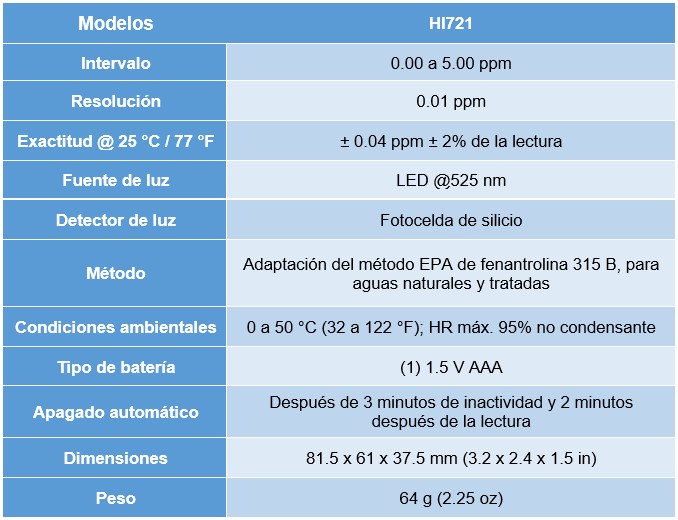 El HI721 checker ® HC (colorímetro de bolsillo) proporciona una manera simple, exacta y rentable medir el hierro. El hierro se encuentra naturalmente en el agua en bajas concentraciones, y puede afectar el sabor del agua, así como manchar la ropa y los electrodomésticos. El hierro se supervisa en plantas industriales y sistemas de enfriamiento y calefacción de agua, ya que es un indicador de corrosión. Diseñado como una alternativa más exacta a los kits de pruebas químicas, el HI721 proporciona resultados rápidos y exactos en unos pocos pasos.