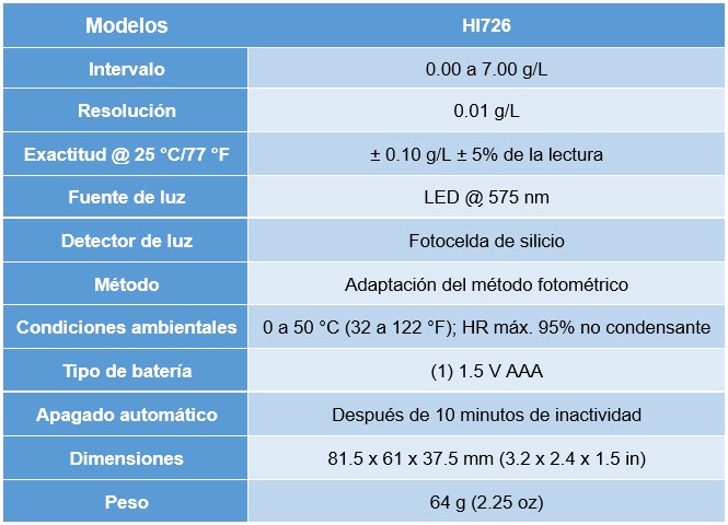 Ficha técnica – Niquel intervalo alto HI726