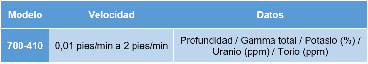 • Modo de registro dual: traza simultáneamente registros espectrales y totales de los núcleos en una sola pasada