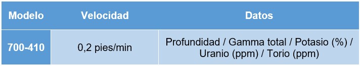 • Modo de registro dual: traza simultáneamente registros espectrales y totales de los núcleos en una sola pasada