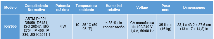 El K47900 EDXRF puede analizar una amplia gama de elementos, desde 11Na hasta 92U,  en sólidos, líquidos, aleaciones, polvos y películas delgadas. El detector de semiconductores  proporciona una calidad de datos superior y los múltiples filtros de tubo automatizados mejoran  la sensibilidad. Además, el K47900 cuenta con una moderna interfaz de usuario basada en íconos, similar a la de un teléfono inteligente,  y una impresora térmica incorporada. Las conexiones de red permiten  la conectividad LIMS.