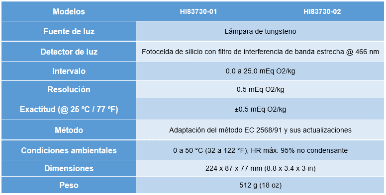 Fotómetro para valor de peróxido en aceite