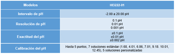 • Calibración de pH de hasta 5 puntos con 7 soluciones estándar y 5 soluciones personalizadas para elegir