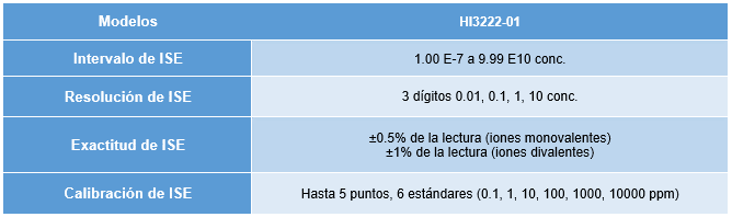 • Tres tipos de modos de registro (para pH, ISE y mV)