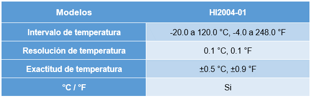 * Los límites de temperatura se reducirán a los límites reales de la sonda/sensor