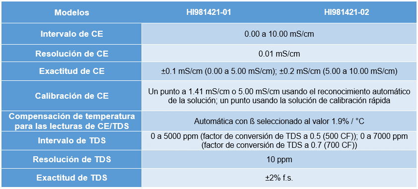 - Factor de conversión seleccionable de CE a TDS / ppm