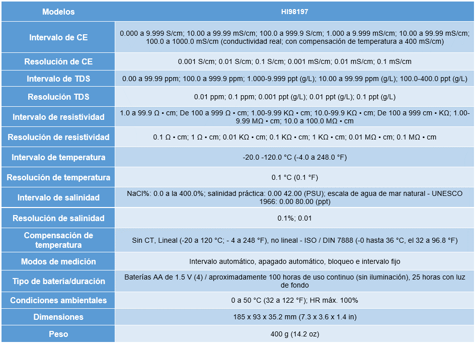 El HI98197 se suministra con una sonda de conductividad HI763123 de cuatro anillos que no sólo permite obtener una resolución de 0.001 μS/cm, sino que también tiene una rosca para inserción en la celda de flujo de acero inoxidable AISI 316 HI605453. Tiene un sensor de temperatura integrado y un coeficiente de temperatura ajustable para lecturas precisas que cubren una gama completa con un solo sensor. La tecnología de cuatro anillos también elimina el efecto de polarización que es común con las versiones estándar de dos anillos. La sonda de conductividad HI763123 se conecta al medidor con un conector DIN impermeable de conexión rápida que permite una conexión segura y fácil de retirar.