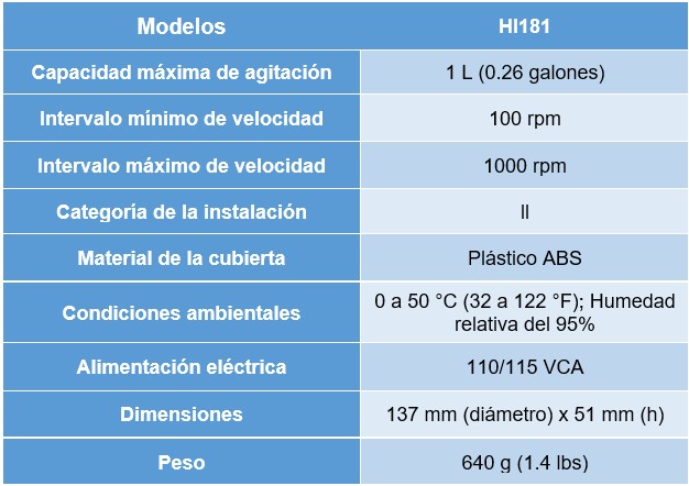 Los mini agitadores magnéticos HI181 son compactos y ligeros, lo que permite su fácil manejo en el laboratorio. El área limitada en las mesas del laboratorio ya no es una preocupación con estos agitadores que ahorran espacio. Varios mini agitadores HI181 se pueden colocar en la mesa al mismo tiempo y los once colores disponibles pueden ayudar al usuario a reconocer diferentes muestras. Las luces LED indicadoras muestran que el agitador está en funcionamiento. El revestimiento de plástico durable resistirá los efectos de los químicos corrosivos derramados accidentalmente. El agitador magnético HI181 es económico y no requiere del gasto adicional para un elemento calefactor, incorporando controles electrónicos que permiten al usuario regular la velocidad con mayor precisión.
