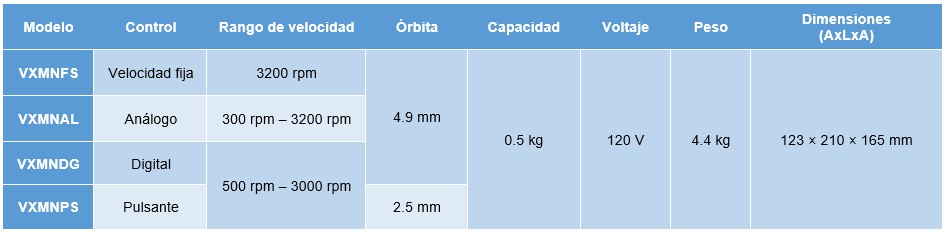 Cuatro modelos de mezcladoras Mini Vortex de OHAUS para una mezcla fiable de suave a alta velocidad. El modelo no digital ofrece control de velocidad variable, el modelo digital permite ingresar la velocidad y el tiempo exactos para lograr resultados repetibles cada vez. El modelo pulsante tiene una acción de pulso única que reduce la generación de calor, mientras que proporciona una mezcla más eficaz y la disrupción celular. El modelo de velocidad fija ofrece una mezcla simple de un toque y alta velocidad para aplicaciones repetitivas.