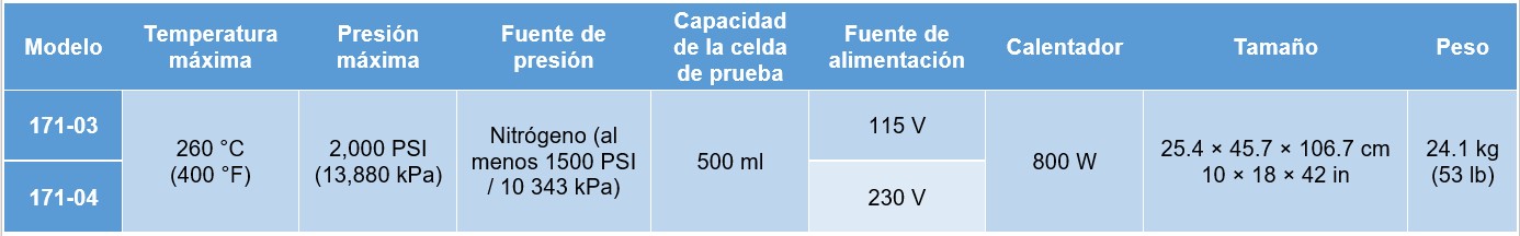 • Una celda de prueba de alta presión