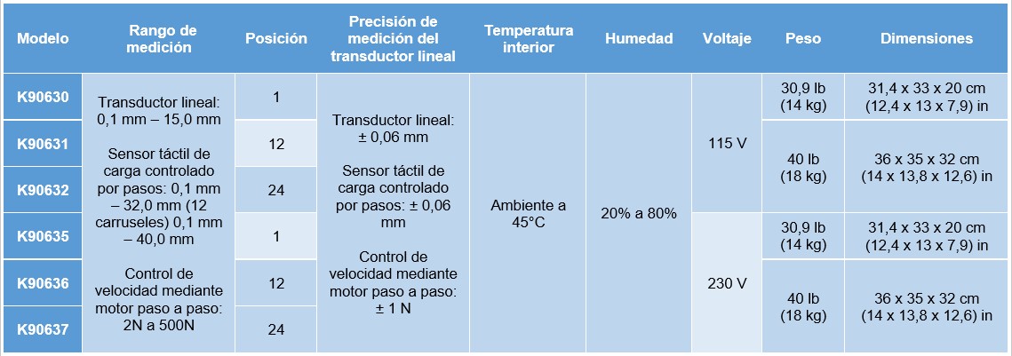 • Dureza – Calibración de celdas de carga de 3 puntos con pesas estándar