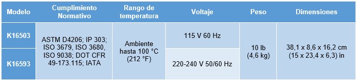 Permite determinar rápidamente el punto de inflamación o las cualidades de combustión sostenida mediante el uso de una pequeña muestra. Se obtiene un resultado de prueba de inflamación/no inflamación en un minuto para puntos de inflamación por debajo de 100 °C (212 °F) con una muestra de 2 ml. Ideal para pruebas de control de calidad y cumplimiento ambiental, así como para el punto de inflamación real de pinturas, fragancias, hidrocarburos y otros líquidos. Los modelos de copa abierta se utilizan para determinar las características de las cualidades de combustión sostenida de mezclas de líquidos inflamables y no inflamables o líquidos con puntos de inflamación muy diferentes al evaluar las características de inflamabilidad. Cuenta con un funcionamiento semiautomático conveniente para pruebas de inflamación/no inflamación. Establezca la temperatura de prueba en la pantalla digital e inyecte una muestra de 2 ml o 4 ml en la copa de muestra. El comprobador se estabiliza rápidamente en el valor deseado, lo que permite aplicar la llama de prueba y observar el resultado por parte del operador. La unidad también realiza determinaciones convencionales de la temperatura de inflamación real mediante el método de comprobador cerrado a pequeña escala. El modelo de copa abierta es para pruebas de combustión sostenida en el rango desde temperatura ambiente hasta 100 °C (212 °F).
