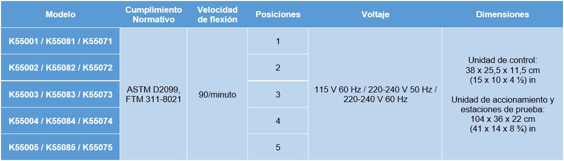 Los comprobadores Maeser de la serie K55000 de Koehler cuentan con capacidad para múltiples muestras y un funcionamiento totalmente automático para lograr la máxima productividad. Se pueden probar hasta cinco muestras simultáneamente en el comprobador Maeser sin la intervención del operador. Una vez que las muestras se cargan en las estaciones de prueba, un centro de control electrónico con contadores de reinicio digital opera las estaciones automáticamente. La unidad de control proporciona un recuento continuo de las flexiones transcurridas durante la prueba y detiene los contadores de la estación individualmente a medida que se produce la penetración en cada muestra. Cuando se produce la penetración en la última muestra, la unidad de accionamiento se apaga automáticamente y los resultados de cada estación de prueba permanecen en la pantalla hasta que el operador los registre. Una batería de respaldo incorporada garantiza que los resultados de las pruebas de las estaciones que han alcanzado la penetración no se pierdan en caso de que se produzca una interrupción del suministro eléctrico.