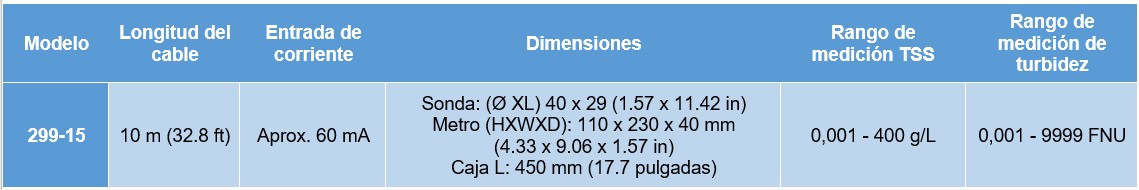 Instrumento compacto para determinación analítica en modo de medición continua con ajuste de tiempo de integración. Ajuste de hasta 5 puntos de medición, almacenamiento de valores de medición con nombre, fecha y hora. A prueba de golpes. Método combinado de luz alternada de múltiples haces con sistema de diodo infrarrojo y enfoque de haz; longitud de onda 860 nm. Los rangos de medición para turbidez y sólidos en suspensión son: 0,001 – 9999 FNU y 0,001 – 400 g/L respectivamente.