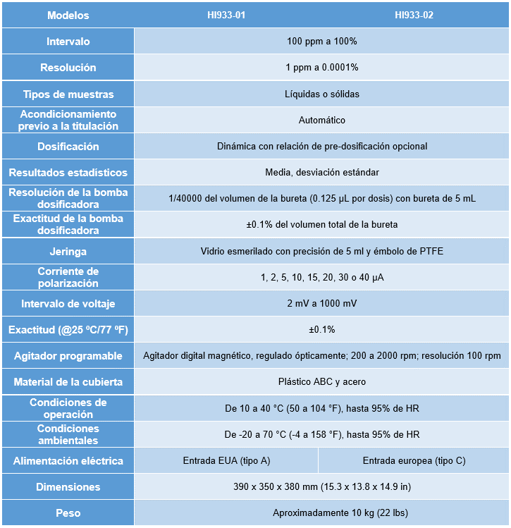 Para científicos y profesionales que necesitan una determinación exacta del contenido de agua en el intervalo de 100 ppm a 100%, nuestra nueva generación de titulador volumétrico Karl Fischer está diseñado para cumplir o exceder sus requerimientos técnicos ofreciendo un costo más bajo. Con funciones de vanguardia en un diseño compacto, este titulador ofrece resultados exactos y requiere menos espacio en el laboratorio. Obtenga la determinaciones exactas del contenido de agua al alcance de un botón. Diseñado para el laboratorio moderno, el titulador Karl Fisher HI933, es perfecto para sus requerimientos de análisis de humedad. Su diseño compacto ahorrará espacio en el laboratorio sin comprometer sus resultados. Cuerpo durable y resistente a los químicos. El sistema de solvente sellado ayuda a mantener el agua fuera del sistema, al mismo tiempo que proporciona una mínima exposición a los reactivos.